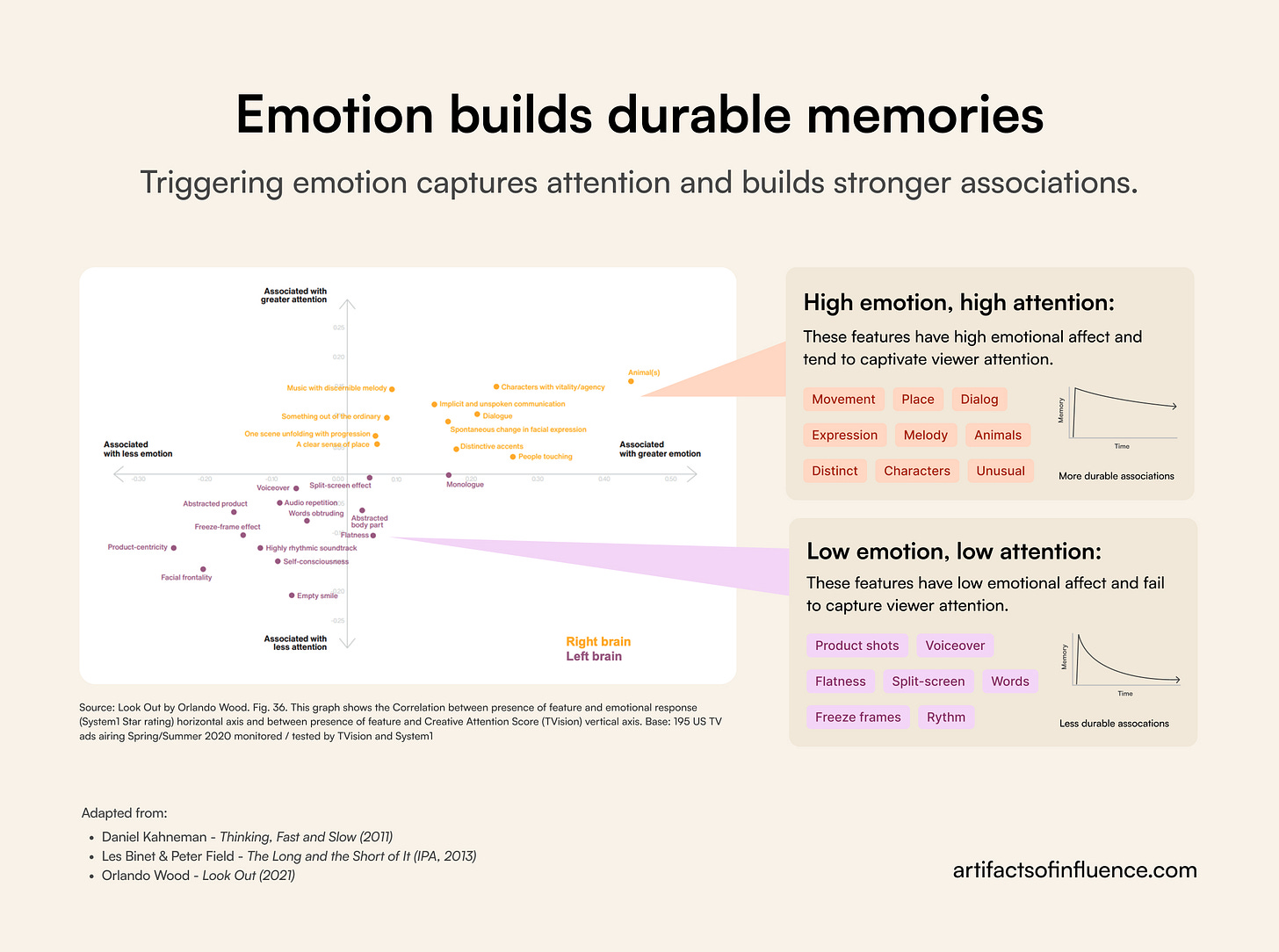 Messages that elicit emotion hold attention and build stronger associations that last longer.